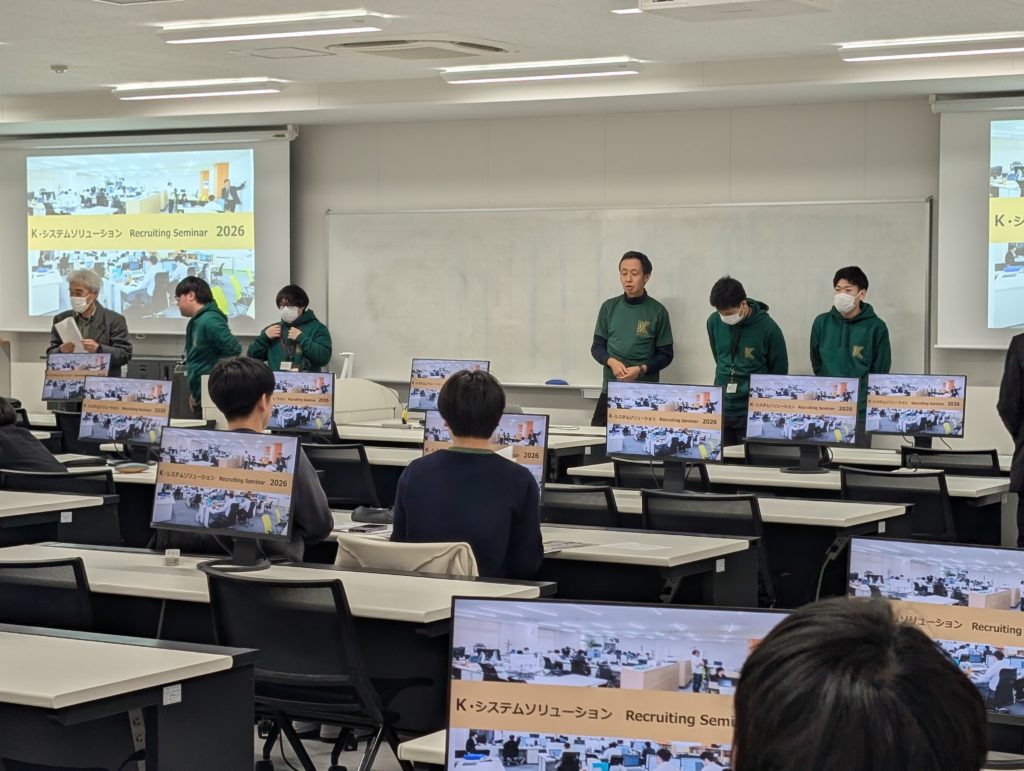 2026-01-21 [ recruit ] 徳島文理大学で会社説明&講義を行いました 徳島文理大学の電子情報工学科の皆さんに当社の会社紹介、当社社員OBによるプログラミングにかかわる演習形式の講義を行いました。架空のサービスを題材にした演習ですが、学生の皆さんにも意欲的に取り組んでいただきました。徳島文理大学の電子情報工学科の皆様、ご参加ありがとうございました。 share